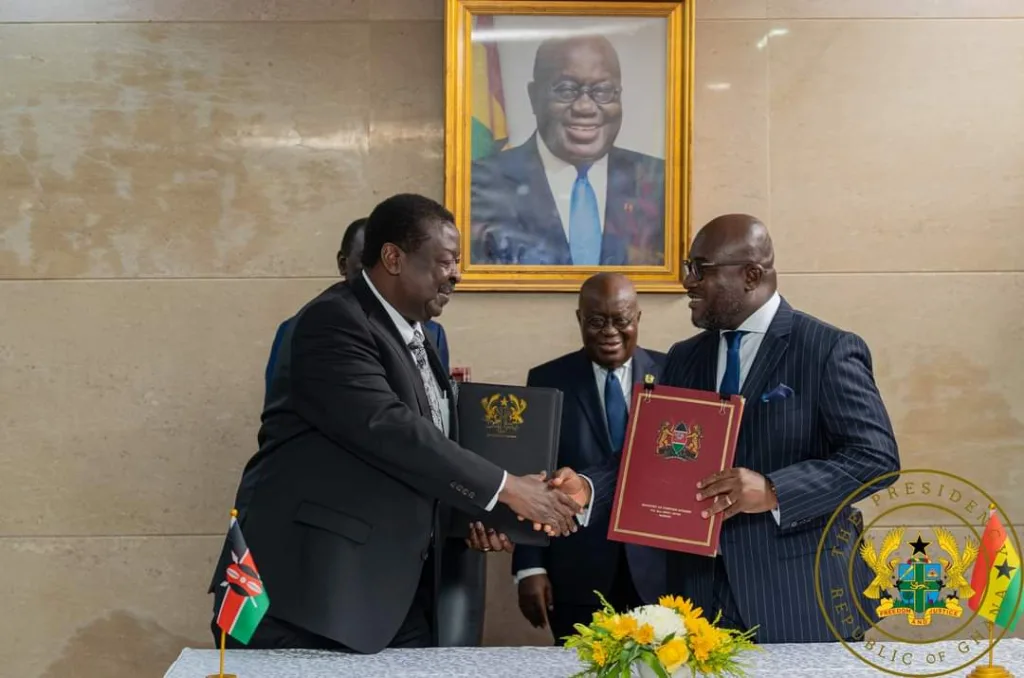 The signing of the agreement was supervised by Ghana’s Foreign Minister, Shirley Ayorkor Botchwey, and Kenya’s Prime Cabinet Secretary/Cabinet Secretary for Foreign and Diaspora Affairs, Dr Musalia Mudavadi, at the Jubilee House, Accra.