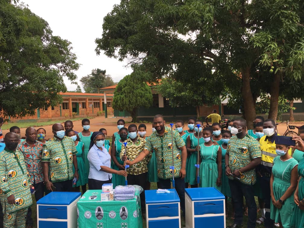 OLA Girls Senior High School at Kenyase received Hospital Beds with Mattresses, Drip Stands, Bedside Cabinets, High Blood Pressure Devices and Pulse Oxymeter for use at its infirmary.
