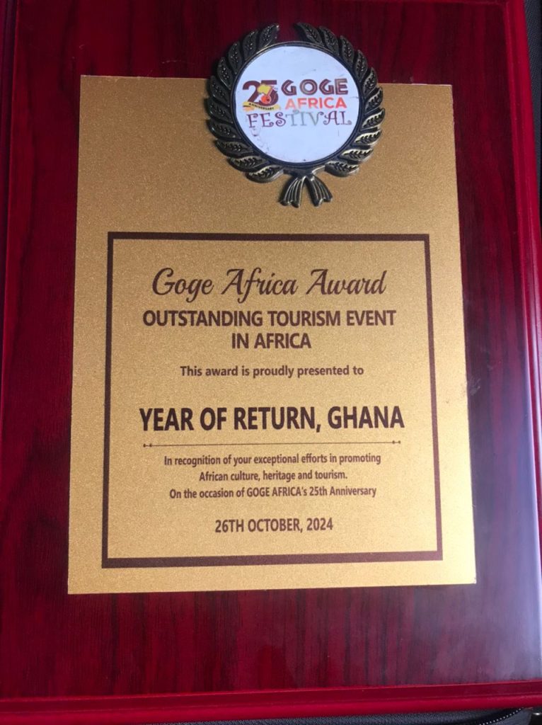 The Ghana Tourism Authority (GTA) has been awarded the Outstanding Tourism Event in Africa for its “Year of Return” and “Beyond the Return” initiatives at the GOGE Africa Festival’s 25th-anniversary celebration in Nigeria.