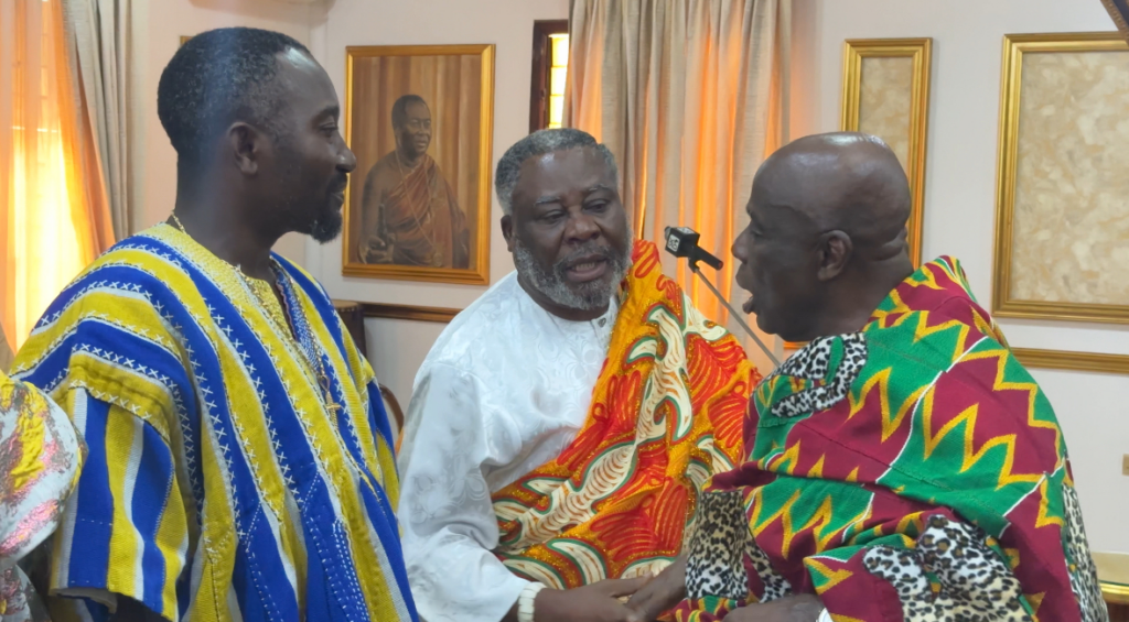 The President of the Greater Accra Regional House of Chiefs and Paramount Chief of Nungua, Prof. King Nii Odaifio Welentsi III, accompanied by the Vice President of the House, HRM Nene Tetteh Wakah III, and selected members of the House, has paid a courtesy visit to the Okyenhene, Osagyefuo Amoatia Ofori Panin II, at the Ofori Panin Fie in Kyebi in the Eastern Region.