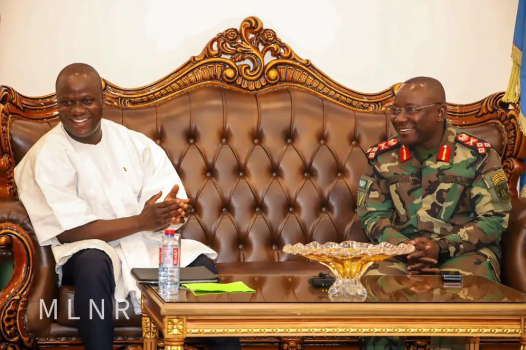 Speaking during a courtesy call on the Chief Of Defence Staff, Lieutenant General Thomas Oppong-Peprah Minister of Lands and Natural Resources Samuel Abu Jinapor touted the collaboration between the Ministry and GAF in various areas including illegal mining, land guard situations and implementation of the government’s flagship afforestation program, Green Ghana Project.