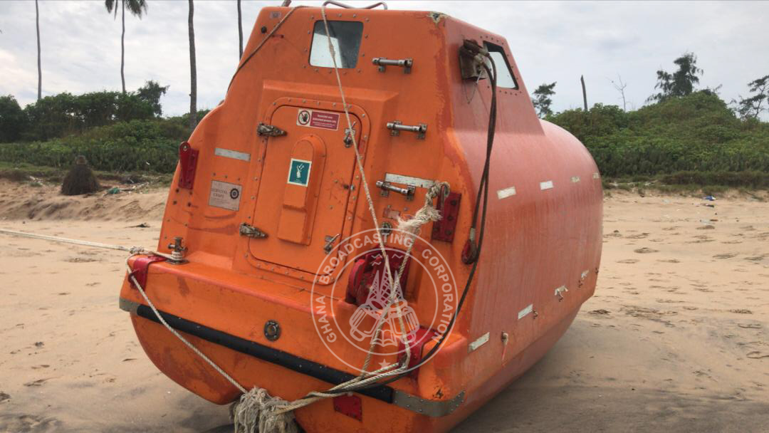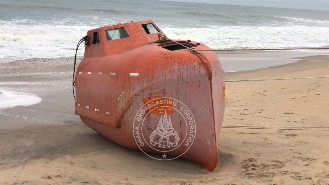 The lifeboat is believed to have been from Portugal making its way to the Gulf of Guinea but was washed ashore on Cape Coast.