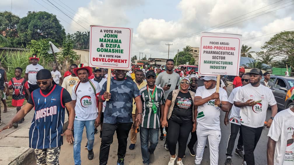 National and regional executives, Members of Parliament and parliamentary candidates of the NDC also participated, who carried placards with inscriptions that sought to explain the 24-Hour policy and the need for the party to return to power.