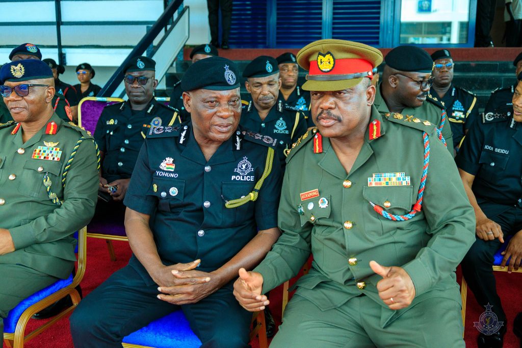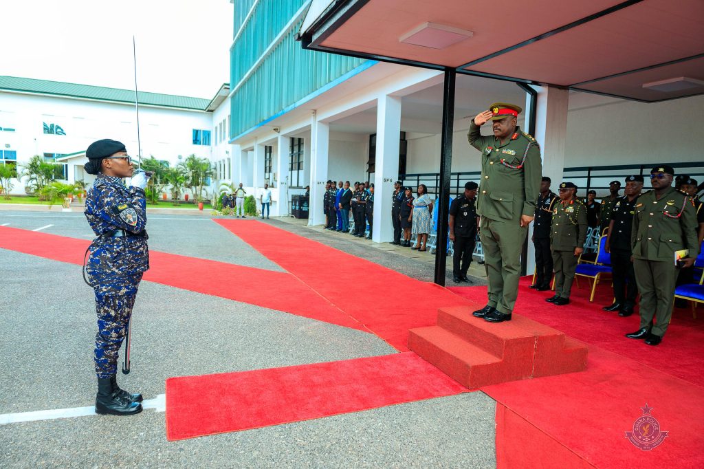 The Inspector-General of Police (IGP), Mr. Christian Tetteh Yohuno, together with members of the Police Management Board (POMAB), hosted a Guard of Honour parade in honour of the Chief of the Defence Staff (CDS), Major General William Agyapong, at the National Police Headquarters.