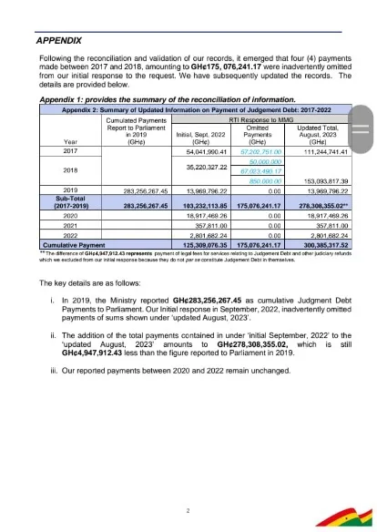 The government of Ghana is said to have paid a total of GH¢300,385,317.52 as judgement debt between 2017 and 2022.