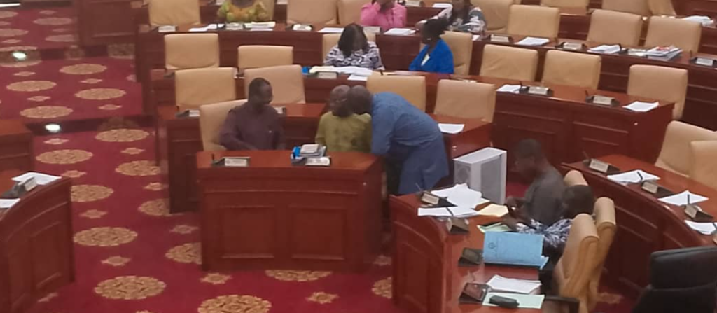 He later moved to sit with the First Deputy Speaker, Joseph Osei Owusu for about two minutes and again moved to his original seat (seat for the Majority Leader) for about three minutes and left the chamber quietly and strangely used the ceremonial entrance to leave the House.