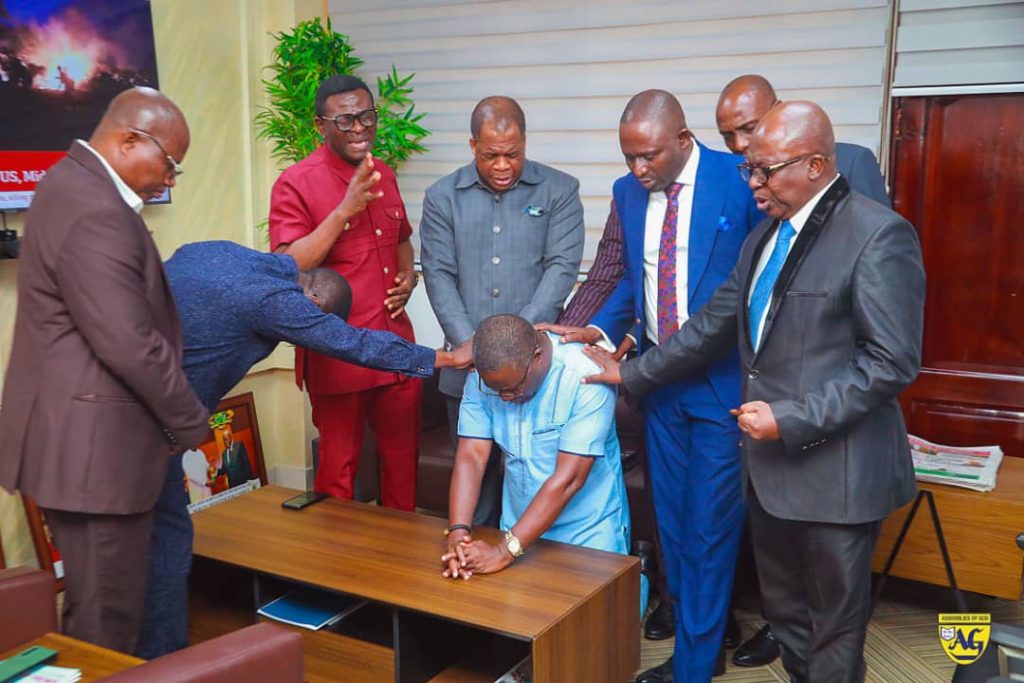 The visit was to congratulate Mr Sanie , who is a member of North Kaneshie Assemblies of God , on his recent appointment as Deputy Minister of Energy. The delegation used the occasion to pray for the Ministry of Energy and the nation.