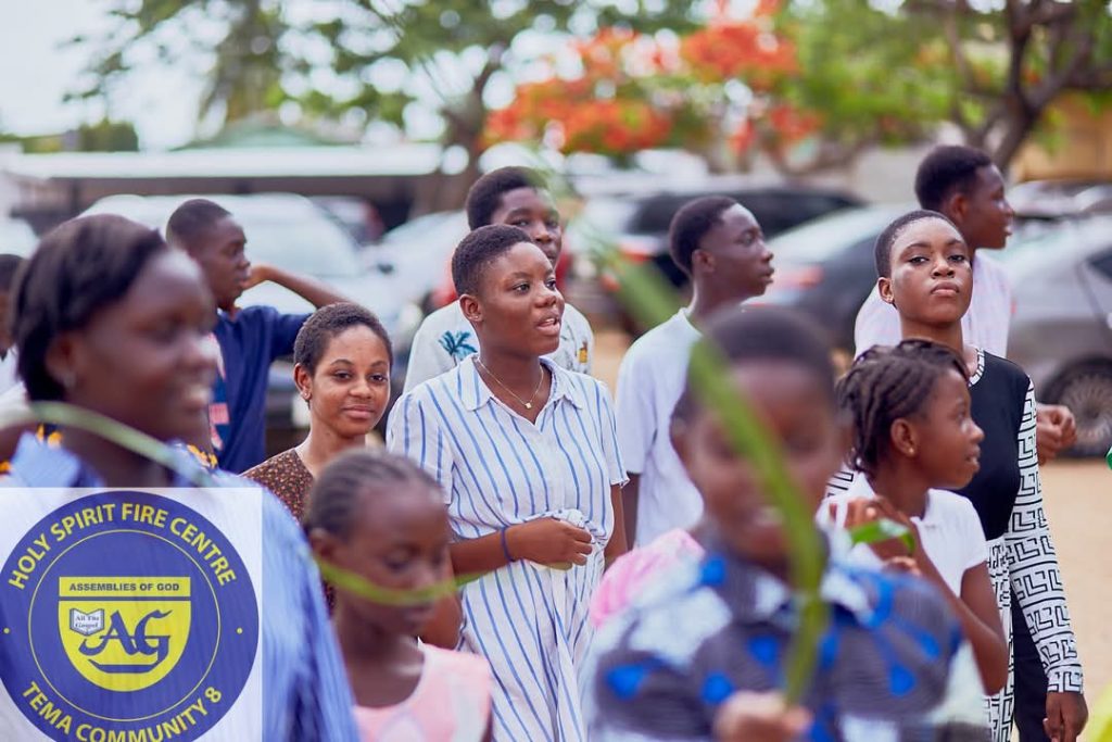 In Tema, the Holy Spirit Fire Center Assembly of God (HSFC, AG) marked the occasion with a vibrant street procession led by children from the Children’s Ministry. Holding palm branches and singing Hosanna songs, the children reenacted the biblical event with great enthusiasm. As part of the celebration, they also shared the Gospel with passersby, reminding them of the death of Jesus and its significance for humanity.