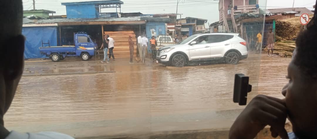 The floodwaters have taken over the outer lane between the Neoplan Station and Ofankor Barrier as well as some parts of the main roads causing unbelievable vehicular traffic during the day.