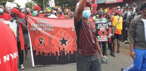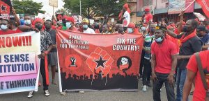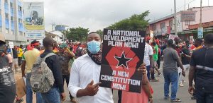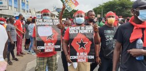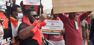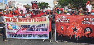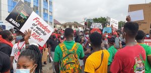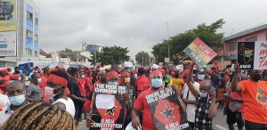 There is heavy security presence primarily from the Police who have formed a shield around the crowd as they slowly make their way to the Black Star Square where they will be addressed by leadership of the Movement.