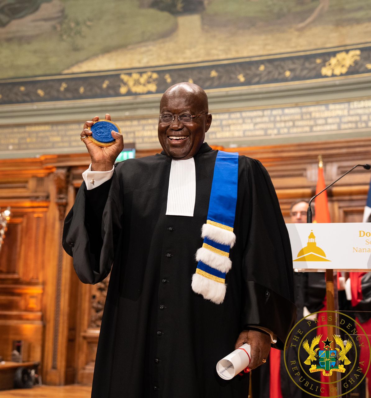 The President of the Republic, Nana Addo Dankwa Akufo-Addo, on Monday, 10th October 2022, was presented with an honorary doctorate degree from the University of Sorbonne, in Paris, France, one of the most prestigious universities in Europe and the world.
