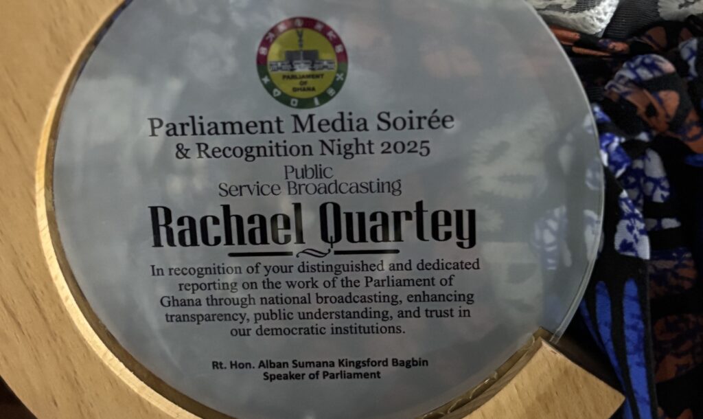 Ms. Quartey, who has reported on Parliament for nearly nine years, was commended for her professionalism, accuracy, and balanced reporting in her work for the state broadcaster. Her reporting has focused on simplifying complex legislative processes, breaking down bills debated in Parliament, and providing fair and factual accounts of parliamentary business.