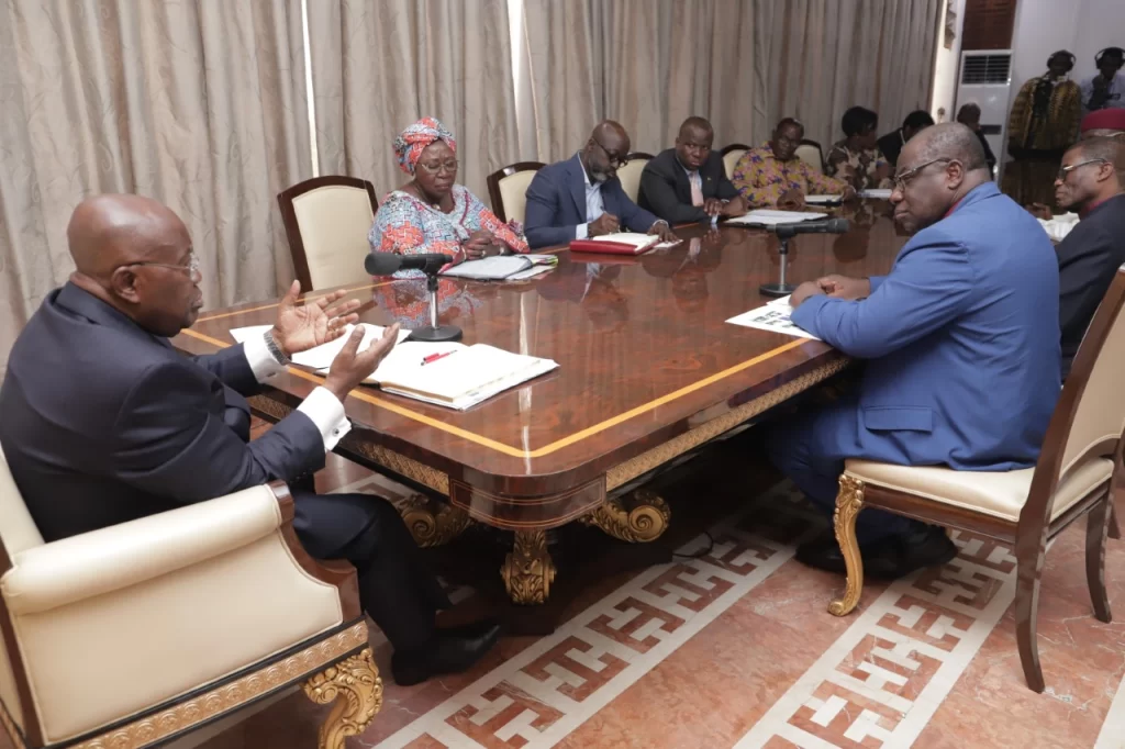 The delegation to Jubilee House, was led by the Moderator of the Presbyterian Church of Ghana and Chairman of the Christian Council of Ghana, Rt. Rev. Professor J.O.Y Mante.