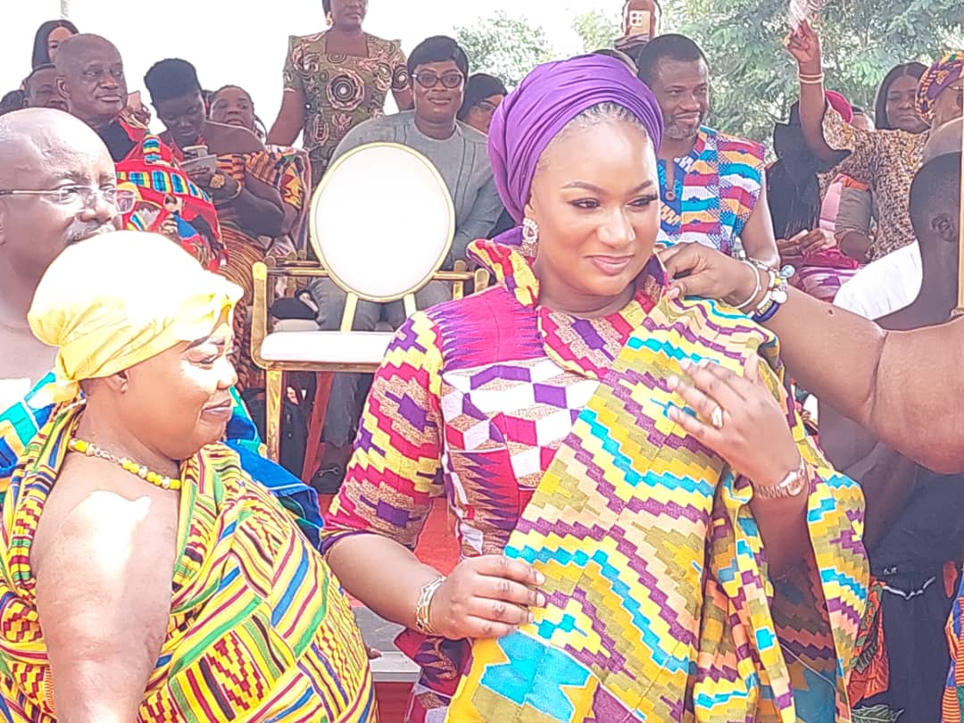 The local Kente Weavers Association out doored and gifted a newly designed Kente Cloth christened ‘Lady Samira Bawumia’ to wife the Vice President.