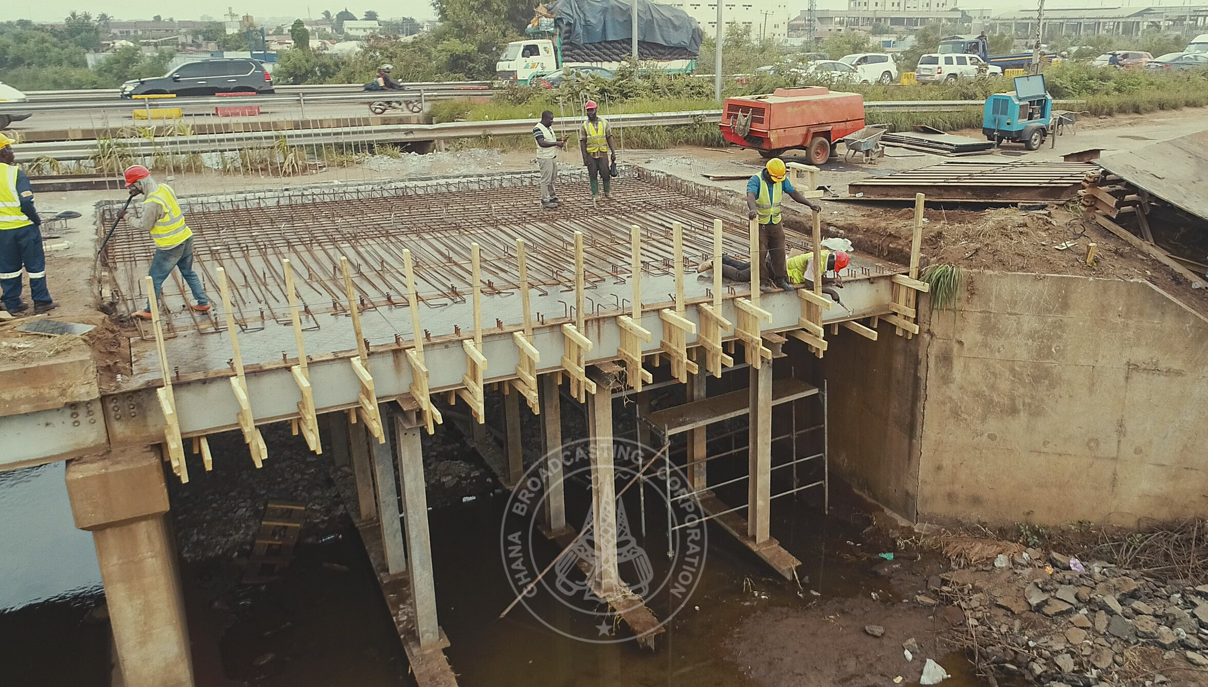 Before construction of the Abattoir Bridge on the Tema motorway started three days ago, the Director of Bridges at the Ghana Highway Authority, Yakubu Koray explained to the public that the replacement and reinforcement concrete slab of the bridge is expected to be completed in three weeks.