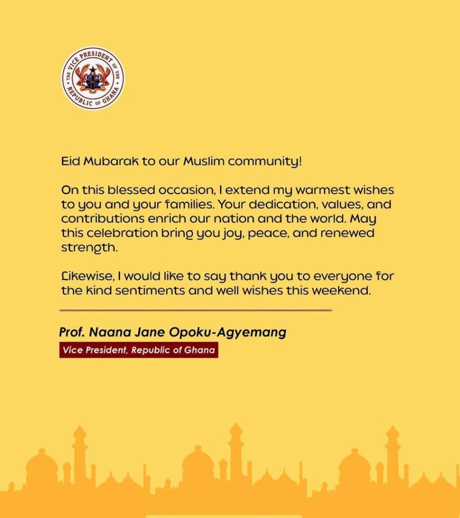 The Vice President also extended her best wishes to the Muslim community as they celebrate this year’s Eid Al-Fitr.