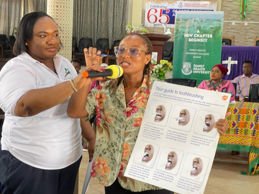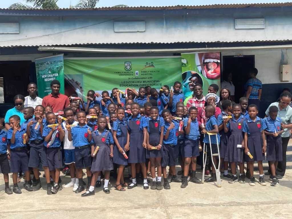 As part of efforts to promote good oral hygiene among schoolchildren in Ledzokuku Municipality, management of Family Health University (FHU) and Family Health Hospital (FHH) schooled pupils of Wajir Central Kindergarten and Wajir Barracks ‘B’ Primary School in Teshie, Accra, on proper oral hygiene practices.