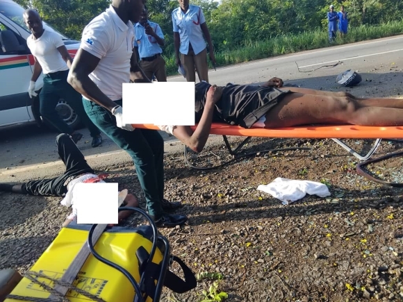 A Mercedes Sprinter with registration number GT 5873-09 veered off the road and crashed into a tree, injuring 23 people and leaving two suspected dead on Thursday morning at Gomoa Simbrofo on the Winneba-Apam highway.