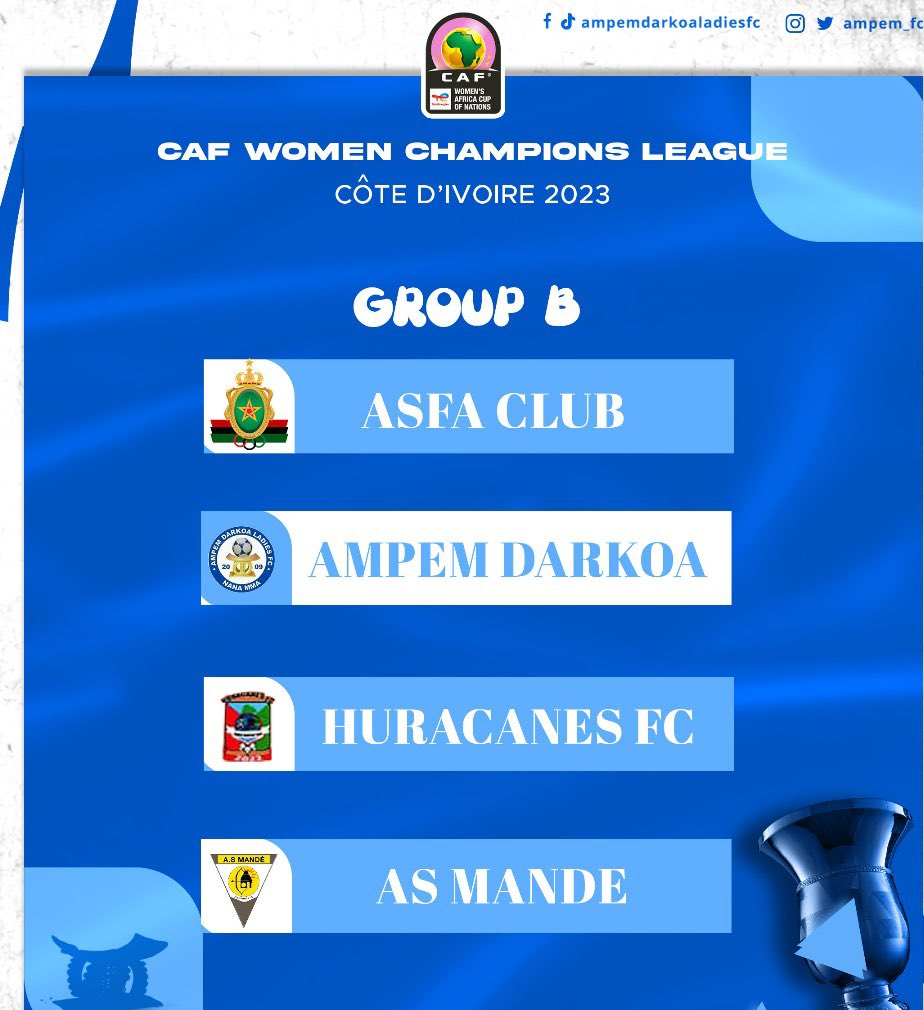 Ghana’s Ampem Darkoa will start their journey in San Pedro on Monday November 6, 2023 against defending champions ASFAR.
