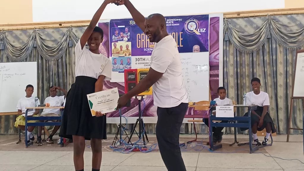 The Asokore College of Education Demonstration “C” Basic School has emerged victorious with 43 points in this year’s edition of New Juaben North Municipal Science and Maths Quiz organized by the Municipal Education Directorate in collaboration with a US Based Ghanaian, Solomon Kumah for Junior High Schools at Asokore SDA College of Education, in the New Juaben North Municipality.