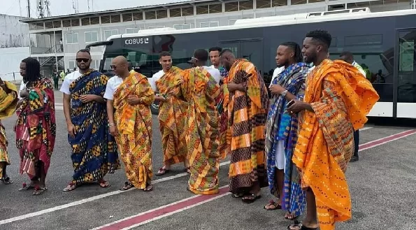 Wearing distinctive home-made Kente in various colors, the Black Stars players arrived in Abidjan, proudly showcasing the rich cultural heritage of their country.