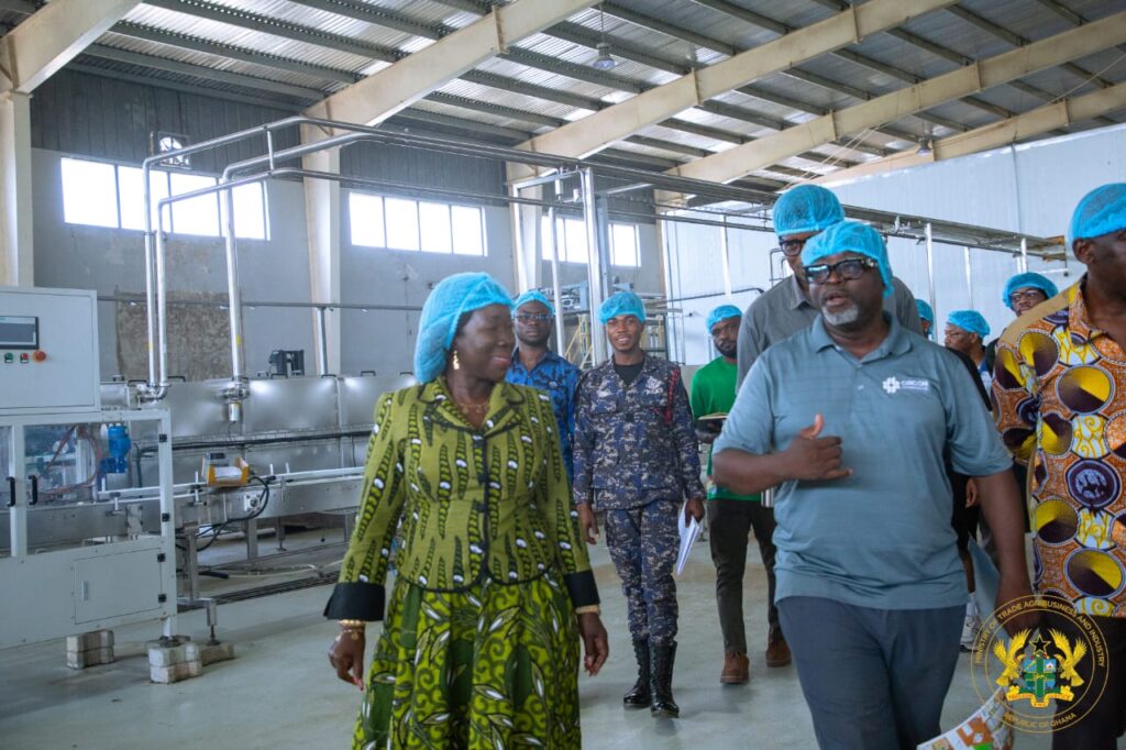 The Minister for Trade, Agribusiness and Industry, Elizabeth Ofosu-Adjare, has paid a working visit to the Ekumfi Juice Factory as part of government efforts to strengthen agro-processing and accelerate industrial growth under the 24-Hour Economy policy.