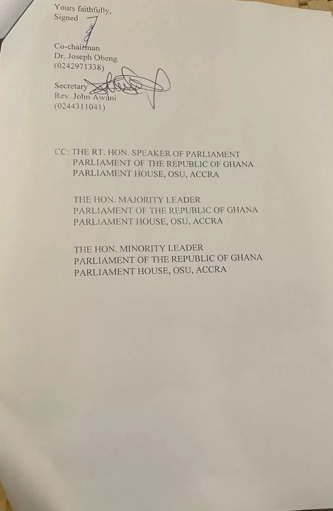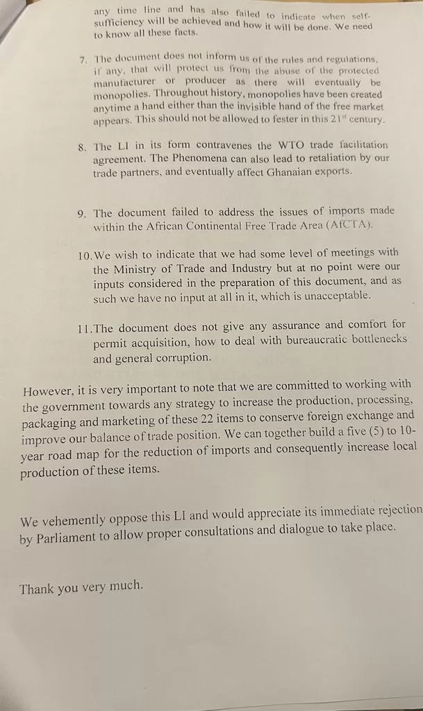 The petition, dated Sunday, November 26, 2023, outlined concerns that when the legislation is passed, it could negatively impact the prices of goods, disrupt the free flow of goods, and potentially harm businesses.