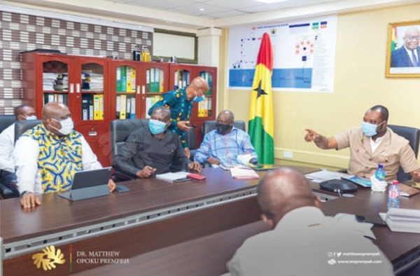 The Chief Executive Officer (CEO) of the Ghana Grid Company Ltd (GRIDCo), Mr. Jonathan Amoako-Baah; the Managing Director of the Electricity Company of Ghana (ECG), Mr. Kwame Agyeman-Budu, and the CEO of the Volta River Authority (VRA), Emmanuel Antwi-Darkwa, at a meeting with the Minister of Energy, Dr. Matthew Opoku Prempeh, last Wednesday, reiterated their commitment to sustainable power supply.