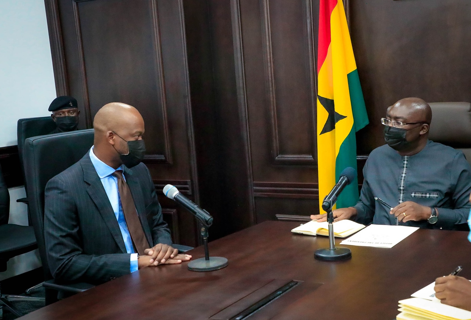Vice President Dr Mahamudu Bawumia has held talks with Secretary-General of the African Continental Free Trade Area (AfCFTA), Mr Wamkele Keabetswe Mene, at the Jubilee House, Accra.