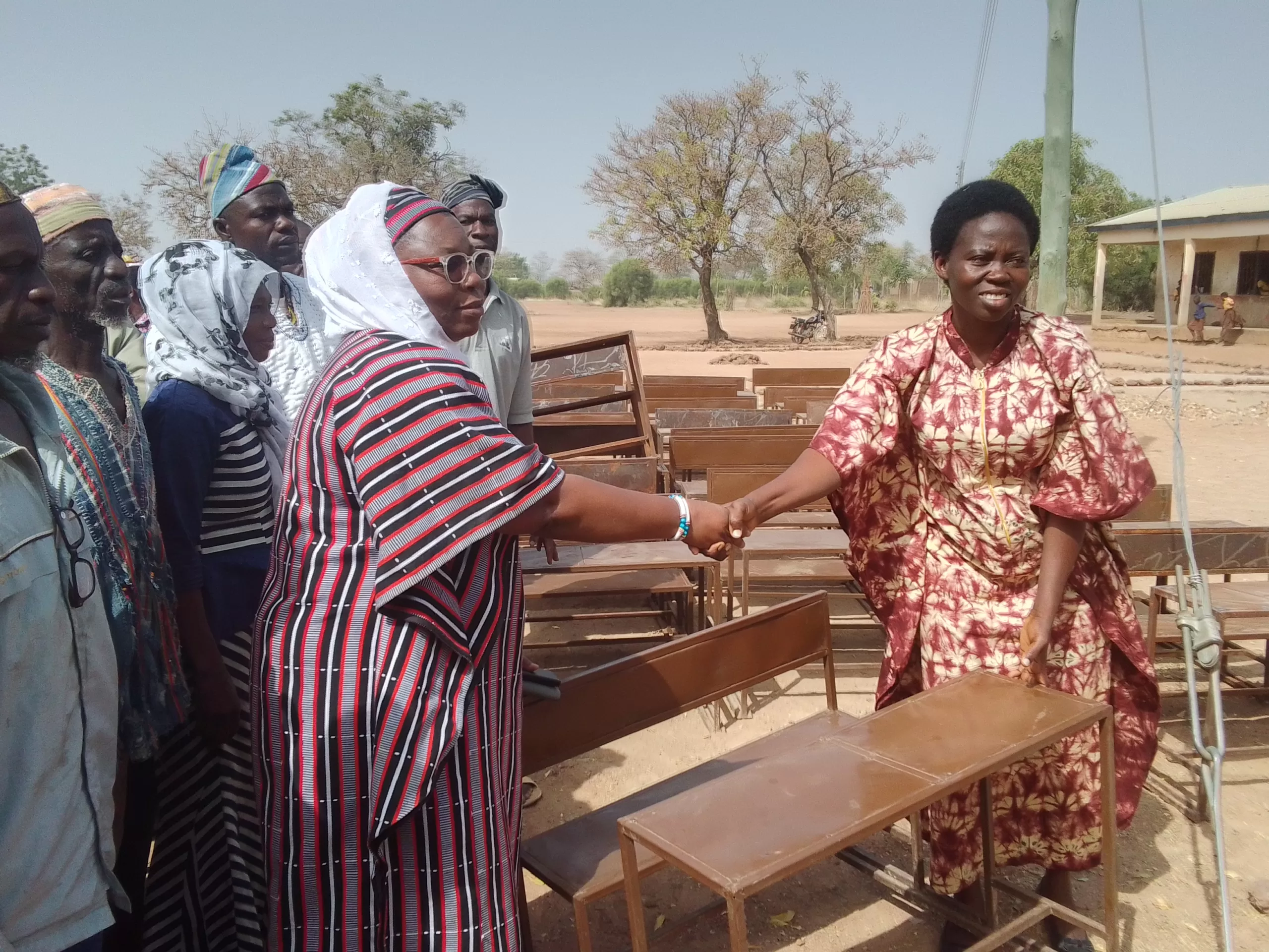 The Queenmother of Chansa, Pognaa Fati Issah Koray, has presented dual desks to the local Primary School and Kindergarten.
