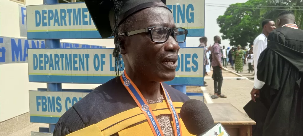A 56-year-old Programmes Staff of GBC in Koforidua, Michael Osafo Debrah, who graduated with a Second Class Upper Division in B-TECH in Marketing, spoke to GBC NEWS about his motivation to embark on such an academic journey at his age, noting that as technology is helping in the emerging economies of countries, there is the urgent need to acquire requisite knowledge to ensure high productivity.