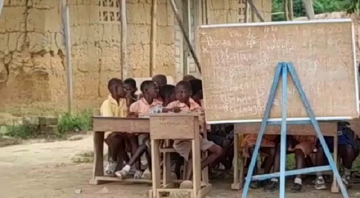 In an interview with the media, the pupils noted that during the course of the week, one of their colleagues got bitten by a snake that fell from one of the trees that they were studying under, but the swift intervention by the Headteacher who sent the child to the hospital, saved the life of their friend.