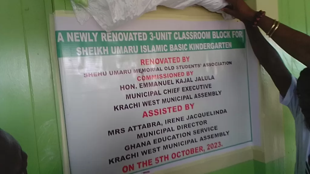 Members of Sheik Umaru Islamic Old Students Association (SUIOSA) have handed over a refurbished three (3)-unit kindergarten block to its alma mater (Sheik Umaru Islamic Basic School complex) in the Krachi West Municipality of the Oti region.