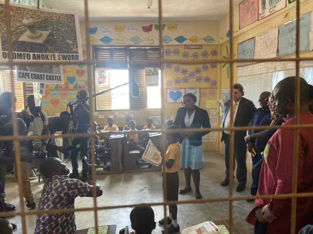 The first stop for Madam Anna Bjerde and her delegation was New Gbawe Municipal Assembly Basic 1 School, a beneficiary of the Ghana Accountability and Learning Outcomes Project (GALOP).