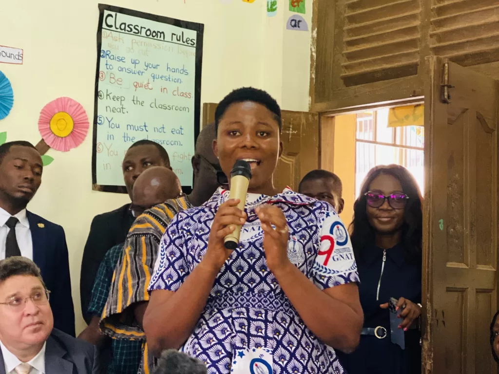 She first stopped at the New Gbawe Municipal Assembly Basic 1 School which is one of the beneficiaries of the Accountability and Learning Outcomes Project (GALOP).