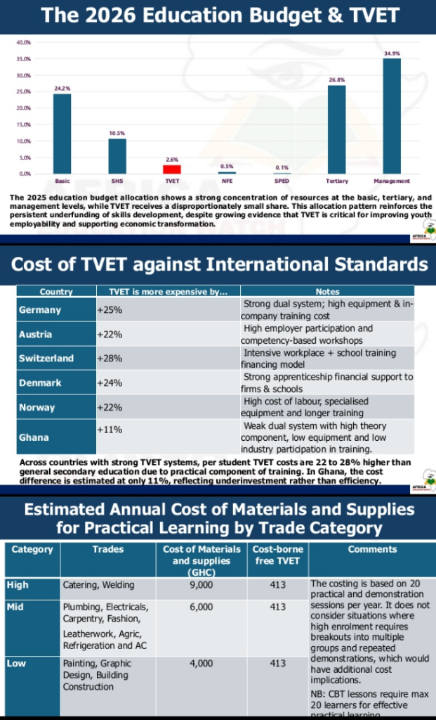 “This allocation pattern reinforces the chronic underfunding of skills development, even as evidence mounts that TVET is essential for employability and economic transformation,” Mr Asare stated.