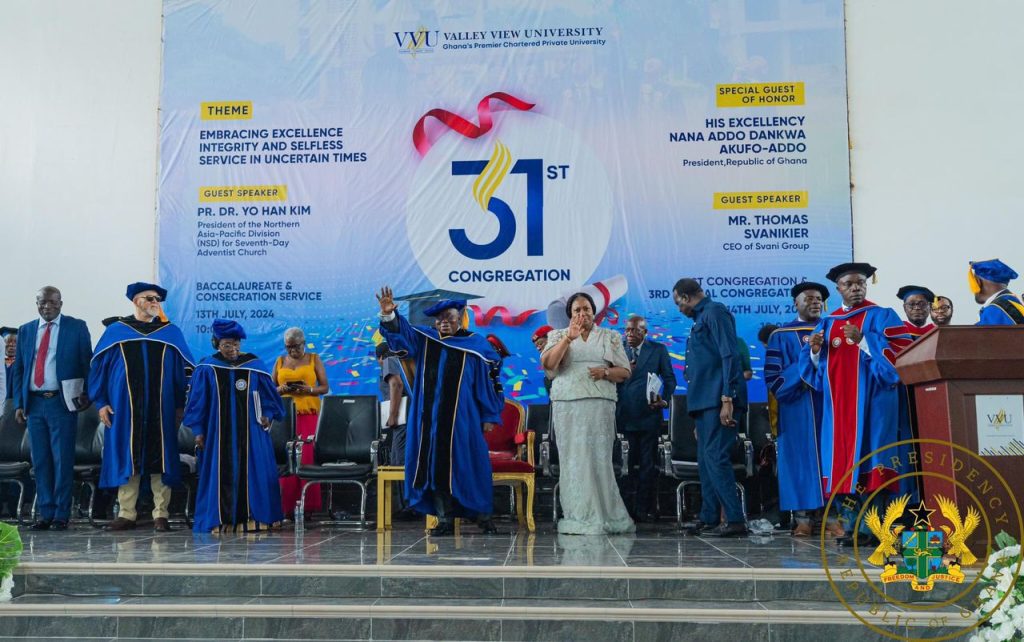 President Akufo-Addo anld wife Rebecca Akufo-Adoo graced the occasion. The President was honoured an honorary doctorate degree from Valley View University on Sunday, 14th July 2024.