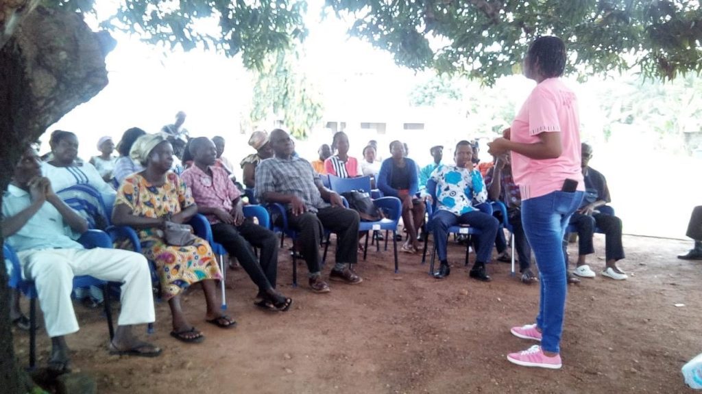 Madam Lukutor Sincere, the Head Promotions Officer at the Ho Teaching Hospital, shared insights on breast and prostate cancer screening with the audience waiting to be screened.