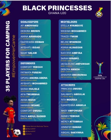 The National under 20 Women’s side, the Black Princesses have converged to prepare for the Under-20 Women’s World Cup to be held in Colombia.