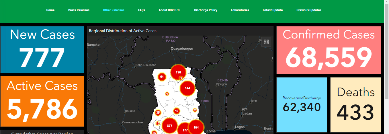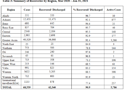 Ghana has recorded nine(9) more deaths and seven hundred seventy-seven (777) new cases of COVID -19 in new data published by the Ghana Health Service for January 31, 2021.