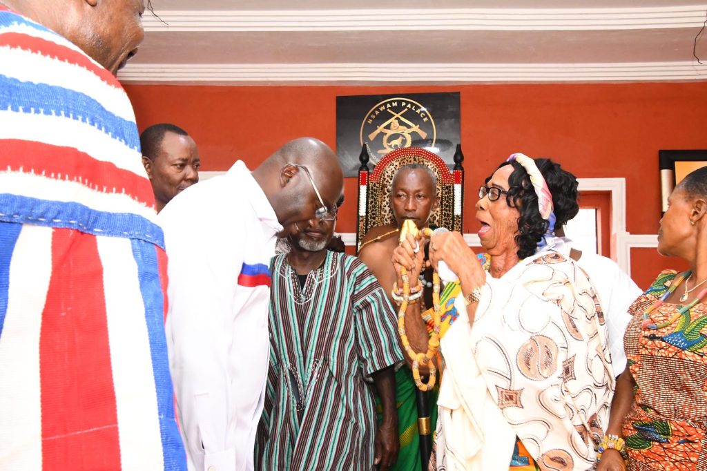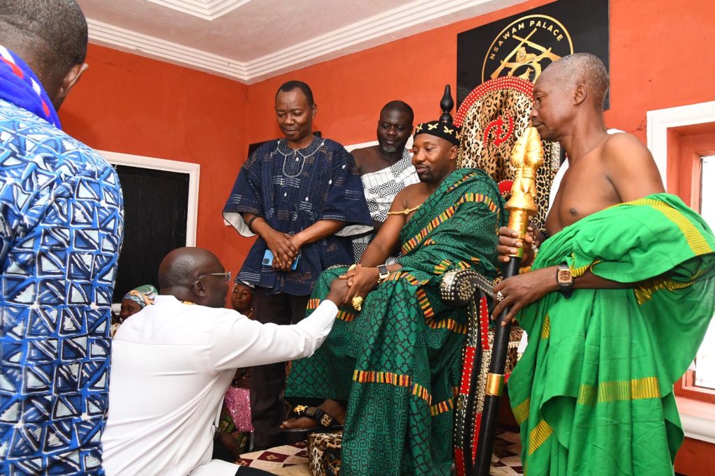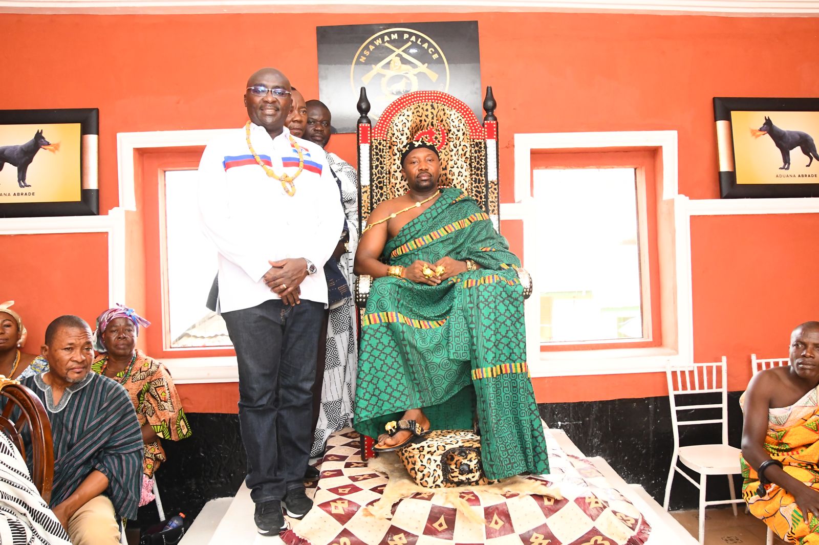 Dr Bawumia was enstooled when he paid a courtesy call on the Chief as he takes his nationwide constituency-focused tour to Nsawam-Adoagyiri, Ayensuano and Suhum.
