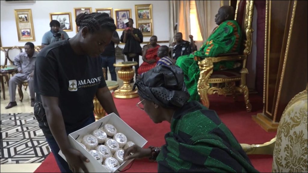 The donation was made when management and some trainees of the foundation paid a courtesy call on the Okyenhene at his palace at Kyebi, in the Abuakwa South Municipality of the Eastern Region. The aim of the visit was to showcase products made by the trainees to the Okyenhene and seek his support in expanding the initiative to other communities in Akyem Abuakwa.