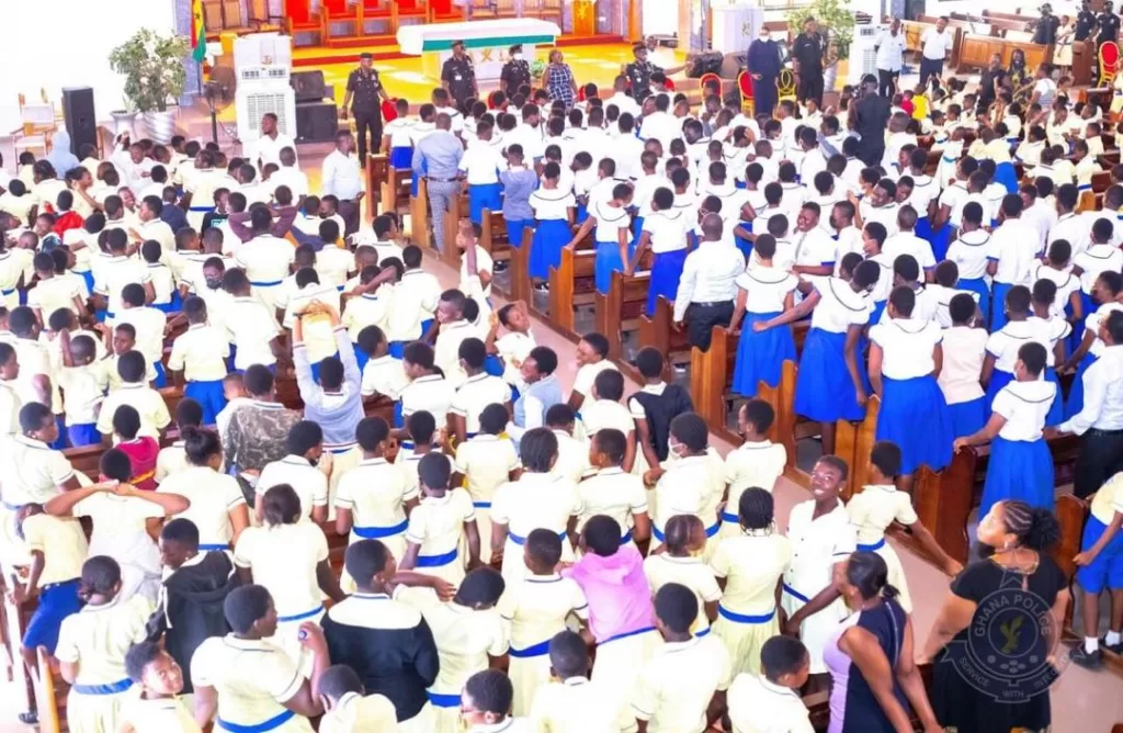 The leadership of the Ghana Police Service on Tuesday 19th September 2023, paid a visit to the pupils and staff of St. John the Evangelist Catholic School, Adenta, Accra, as part of the Snatch Them Young Policing Initiative dubbed STYPI.