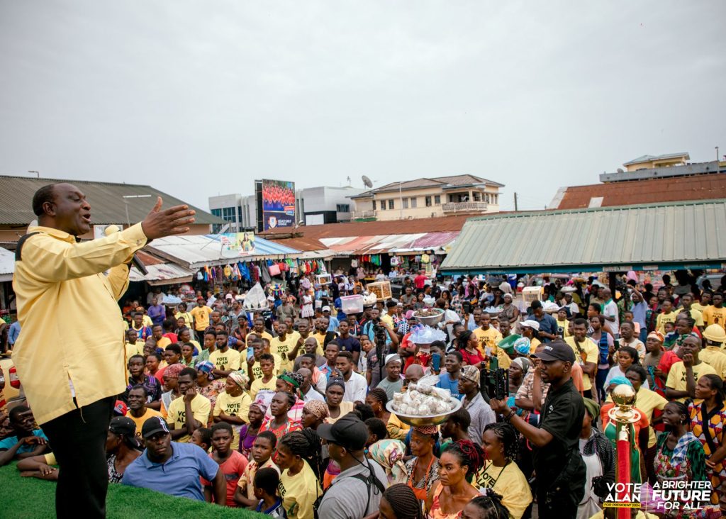 The Leader of the Movement for Change, Alan John Kyeremanten has embarked on a one-day campaign tour in the Eastern Regional Capital, Koforidua to sell his campaign message to the people to vote for him in the December 7 polls.