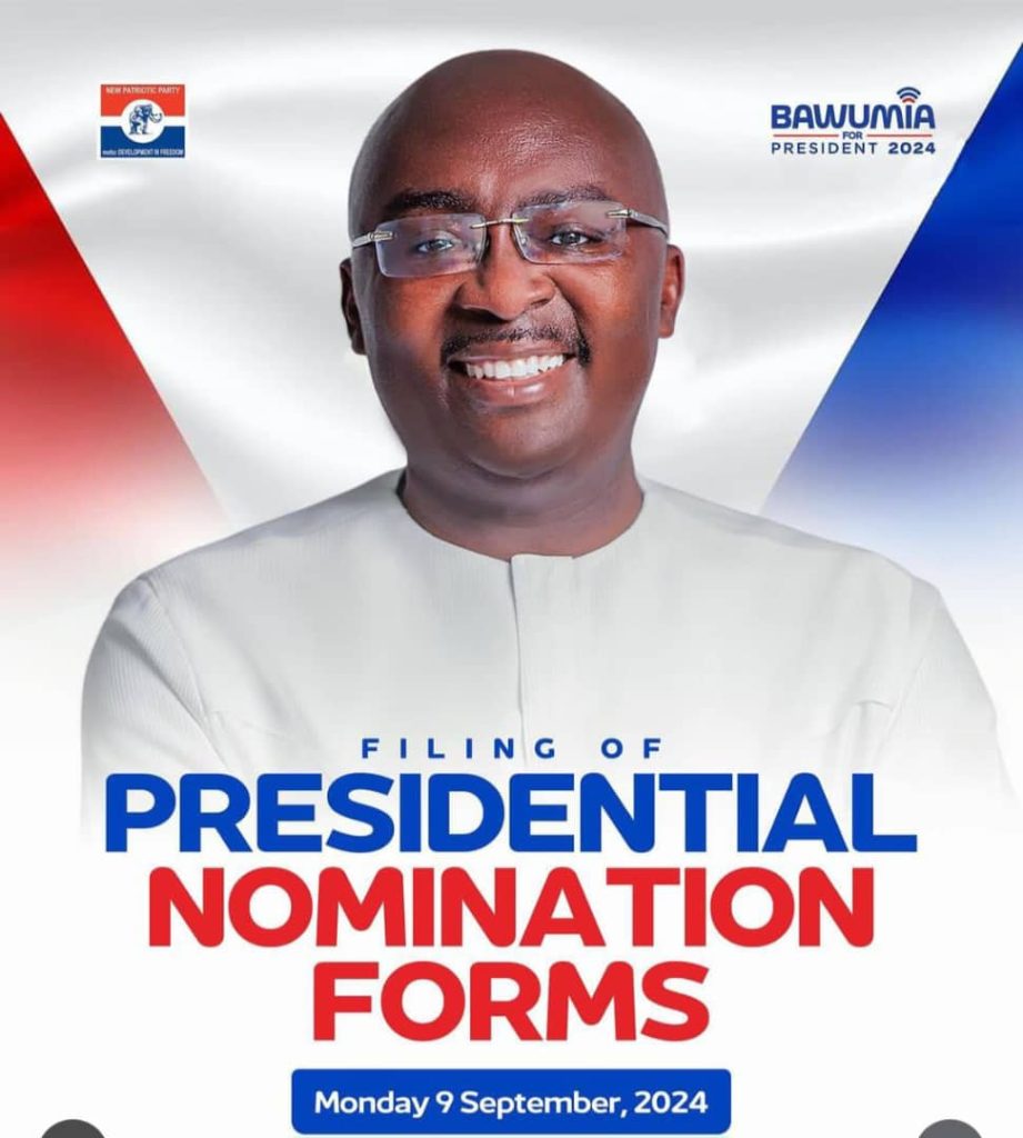 The NPP Presidential Candidate, Dr. Mahamudu Bawumia will, on Monday, September 9, file his presidential nomination at the headquarters of the Electoral Commission.