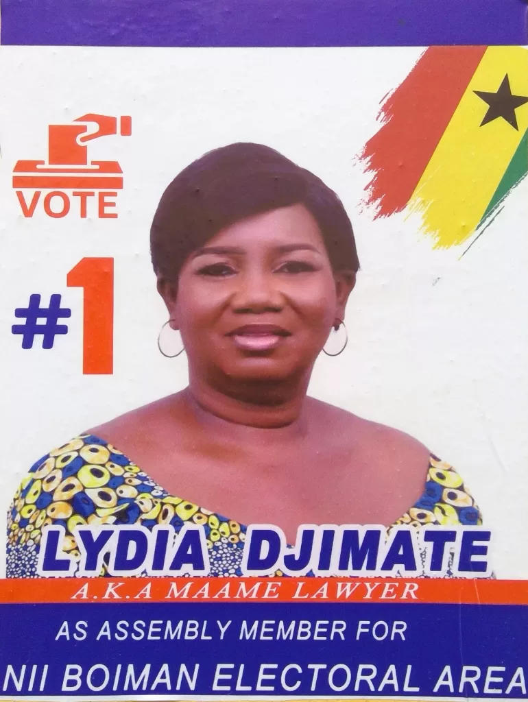 Madam Lydia Djimate (a.k.a. Maame Lawyer) is the other person aspiring for the assembly member position. She had previously been an Assembly woman in the area, and seeking a comeback.