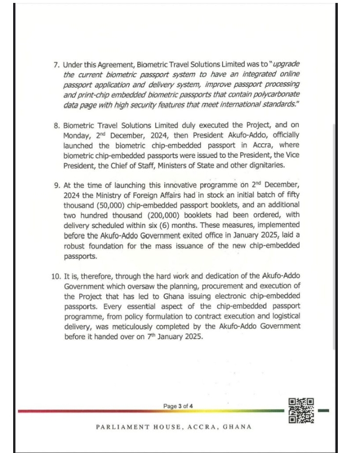 “Every essential aspect of the chip-embedded passport programme, from policy formulation to contract execution and logistical delivery, was meticulously completed by the Akufo-Addo Government before it was handed over on 7th January 2025,” he emphasised.