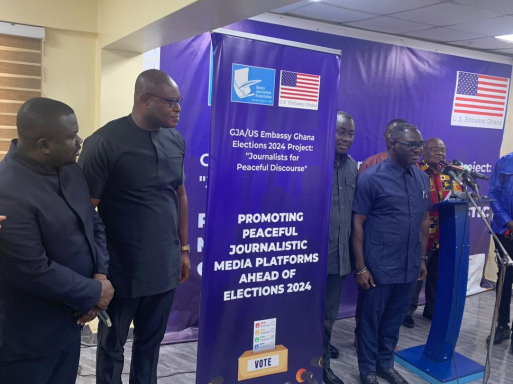 As part of its effort to ensure the freedom of expression for journalists in the country, using election 2024 as a yardstick, the Ghana Journalists Association, in partnership with the U.S. Embassy Ghana, has launched the GJA/U.S. Embassy Ghana Elections 2024 project dubbed ‘Journalists for Peaceful Discourse’.