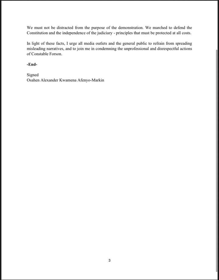 He also criticised attempts by unnamed individuals to “twist the narrative” and frame him as the aggressor, calling such claims a distraction from the central message of the demonstration, the defense of Ghana’s Constitution and judicial independence.