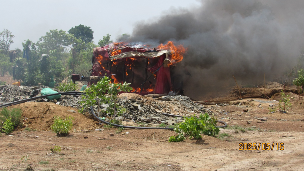 Upper East Regional Minister Donatus Akamugri has cautioned illegal miners to obtain permits or face arrest. The minister was leading an anti-galamsey task force in a crackdown in Naaga. The Minister led the anti-galamsey operation in the Naaga-Sakombiisi Forest, following a community petition over illegal mining activities in the Kasena-Nankana Municipality. Prior to the operation, the minister visited the community, where illegal miners had established three operational sites serving as processing hubs for gold ore extraction in the forest.